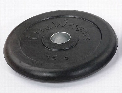 Диск обрезиненный 15 кг Lite Weights d-51mm, с металлической втулкой RJ1050 черный