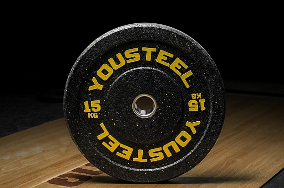 Диск 15кг, каучуковый, тренировочный, черный YouSteel