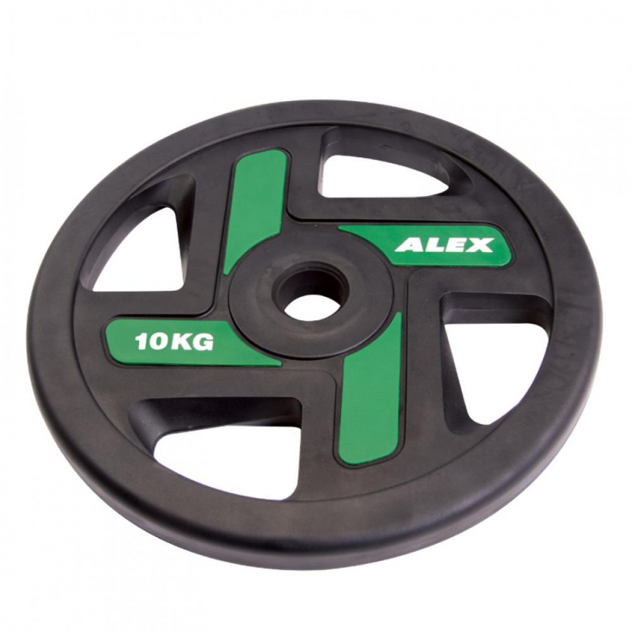 Диск полиуретановый Alex P-TPU-10K 51 мм 10 кг с хватами, зеленый