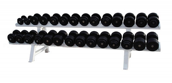Гантельный ряд ProfiGym от 8,5 до 41кг, шаг 2,5 кг (14 пар), на двухъярусном стеллаже ГП-009