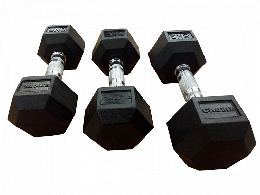 Гантель обрезиненная, гексагональная, анатомическая хромированная ручка, номинал веса - 8 кг Pangoli