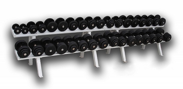 Гантельный ряд ProfiGym от 6 до 46кг, шаг 2,5 кг (17 пар), на двух двухъярусных стеллажах ГП-008