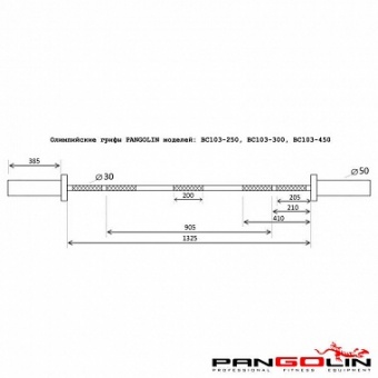 Гриф олимпийский тренировочный D50, L2200 Pangolin C103-300