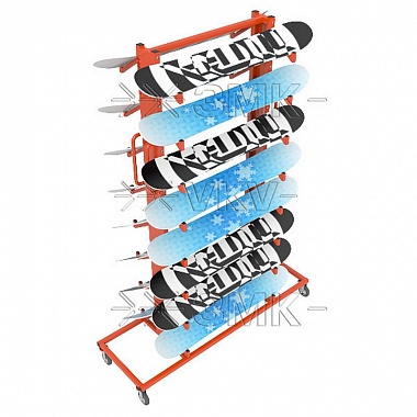 Стеллаж для сноубордов ЗМК Премиум, мобильный двухсторонний, на 38 штук