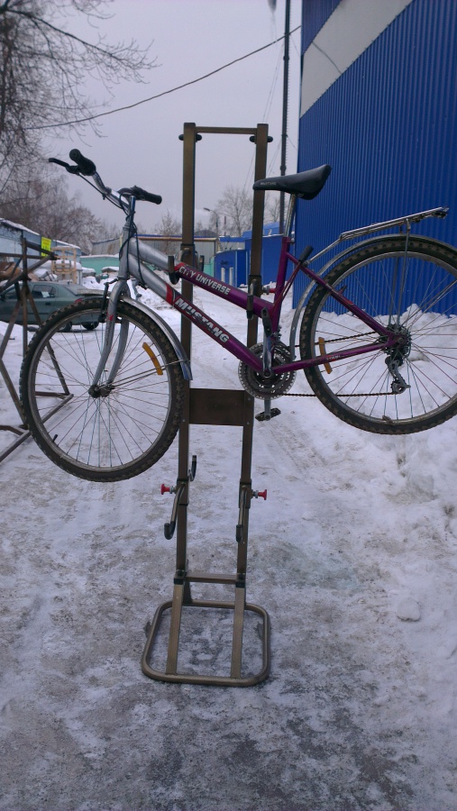 • Удобная и устойчивая напольная стойка для велосипедов. Благодаря независимой регулировке лап можно установить велосипед любого размера.