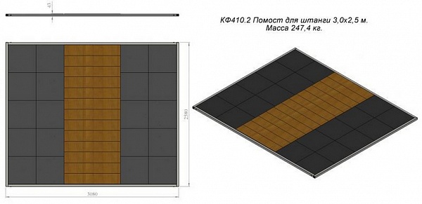 Помост для работы со штангой V-Sport (тренировочный) 3х2,5м KF410