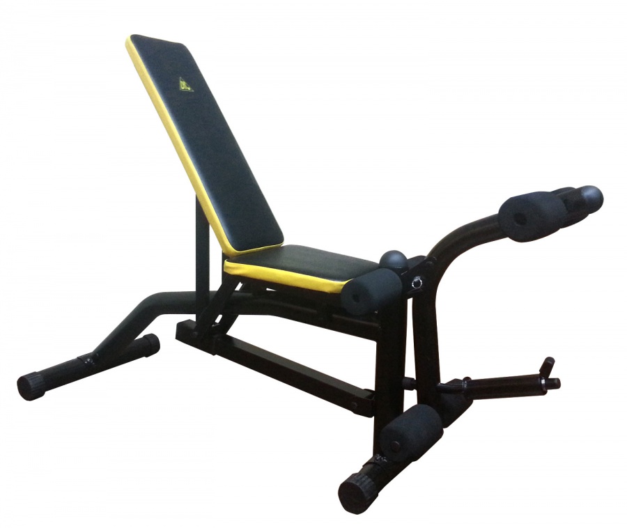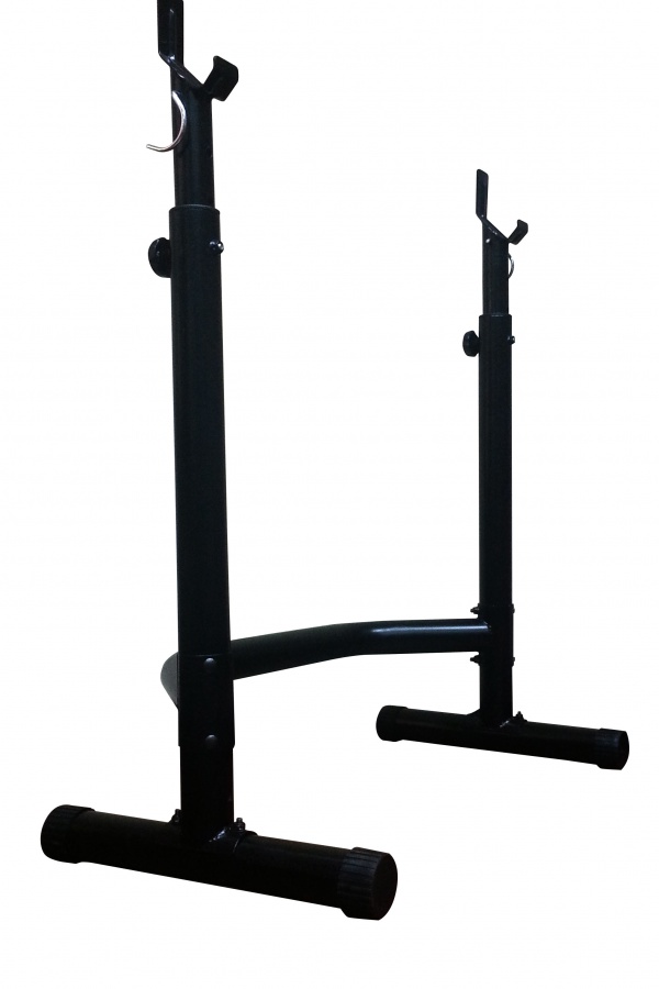 Многофункциональная силовая скамья под штангу. Прочная устойчивая конструкция с ударопрочным эмалевым покрытием. Ножные тяги снабжены мягкими валиками. Скамья отсоединяется от стоек и может использоваться отдельно. Изменяемый угол наклона скамьи позволяет занять правильное положение. Позволяет выполнять упражнения: жим лежа, сгибание и разгибание ног в коленном суставе, пресс. В качестве нагрузки используются диски диаметром 26 мм и 50 мм через адаптер (в комплекте). Штанга и диски в комплект не входят.