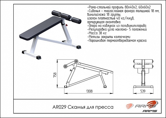 Скамья для пресса регулируемая ARMS AR029