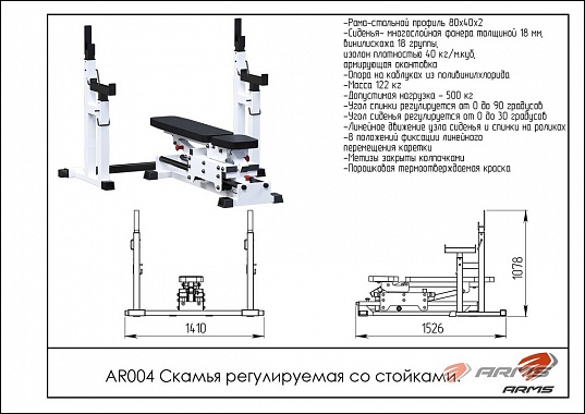 Скамья регулируемая со стойками ARMS AR004