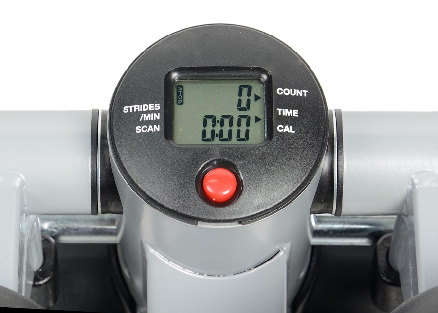 Показания компьютера  время тренировки, расход калорий, счетчик, количество шагов в минуту, сканирующий режим всех параметров тренировки