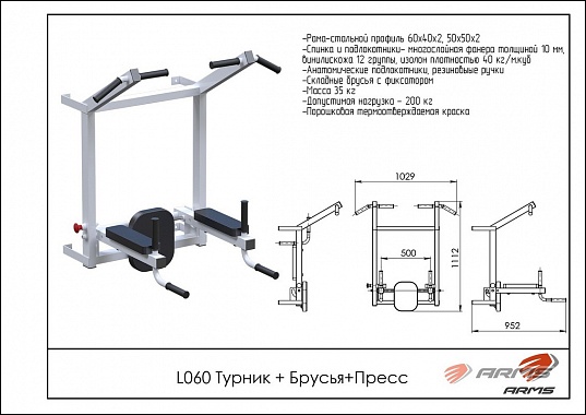 Турник+брусья+пресс ARMS L060