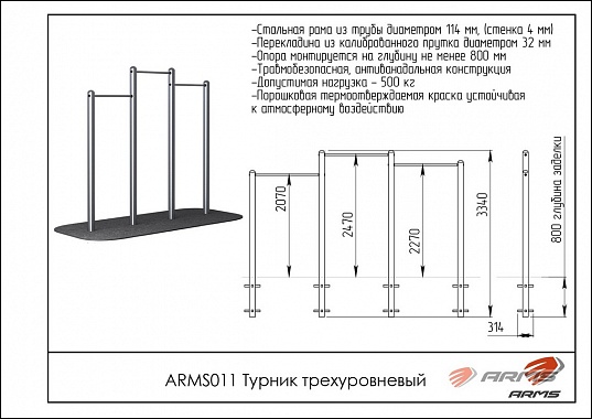 Трехуровневый турник ARMS ARMS011