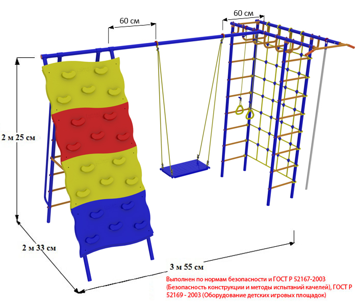 уличный дск вереск "непоседа-дачник №7" с рукоходом, скалодромом и качелями на подшипниках