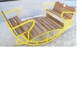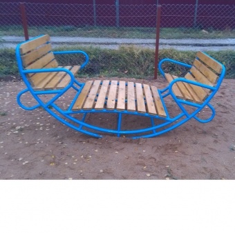 • Стальная труба. Надежная краска. Сиденья - влагостойкая фанера или доска. Страховка от переворачивания. Отличный вариант для детского сада или двора.