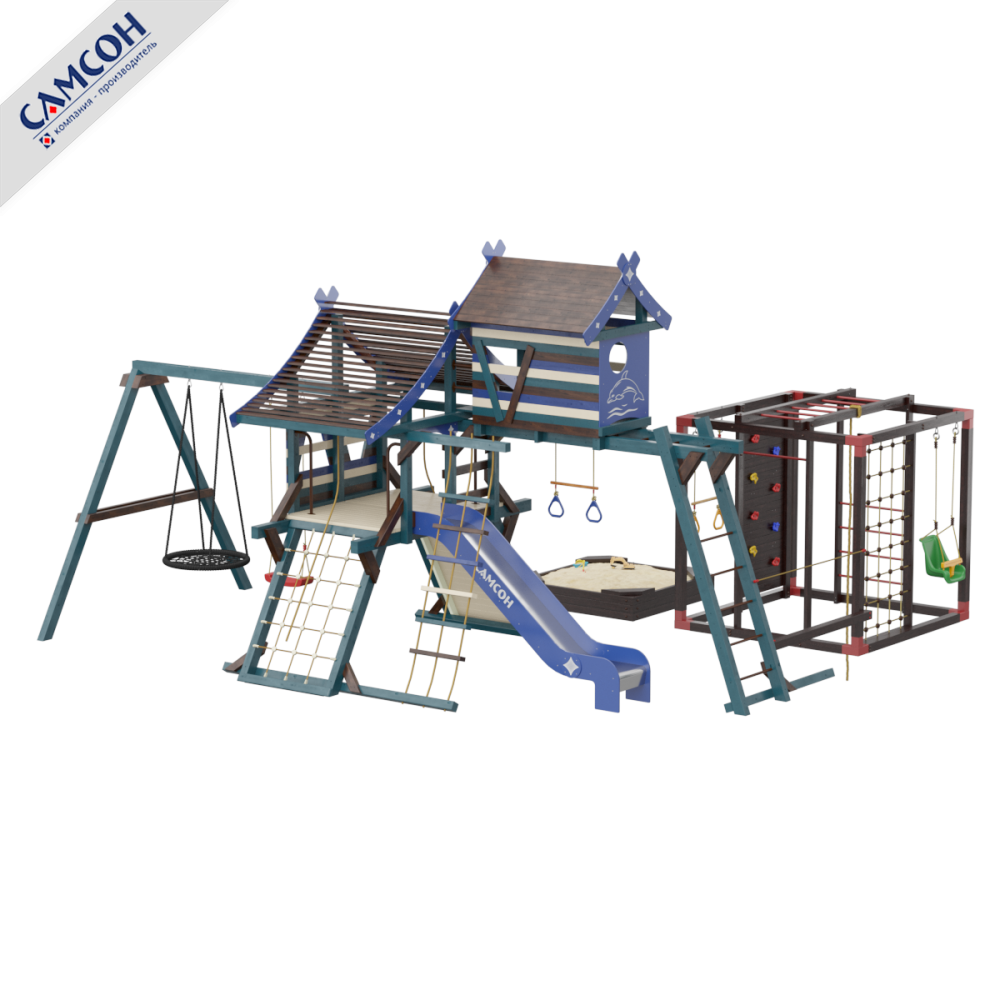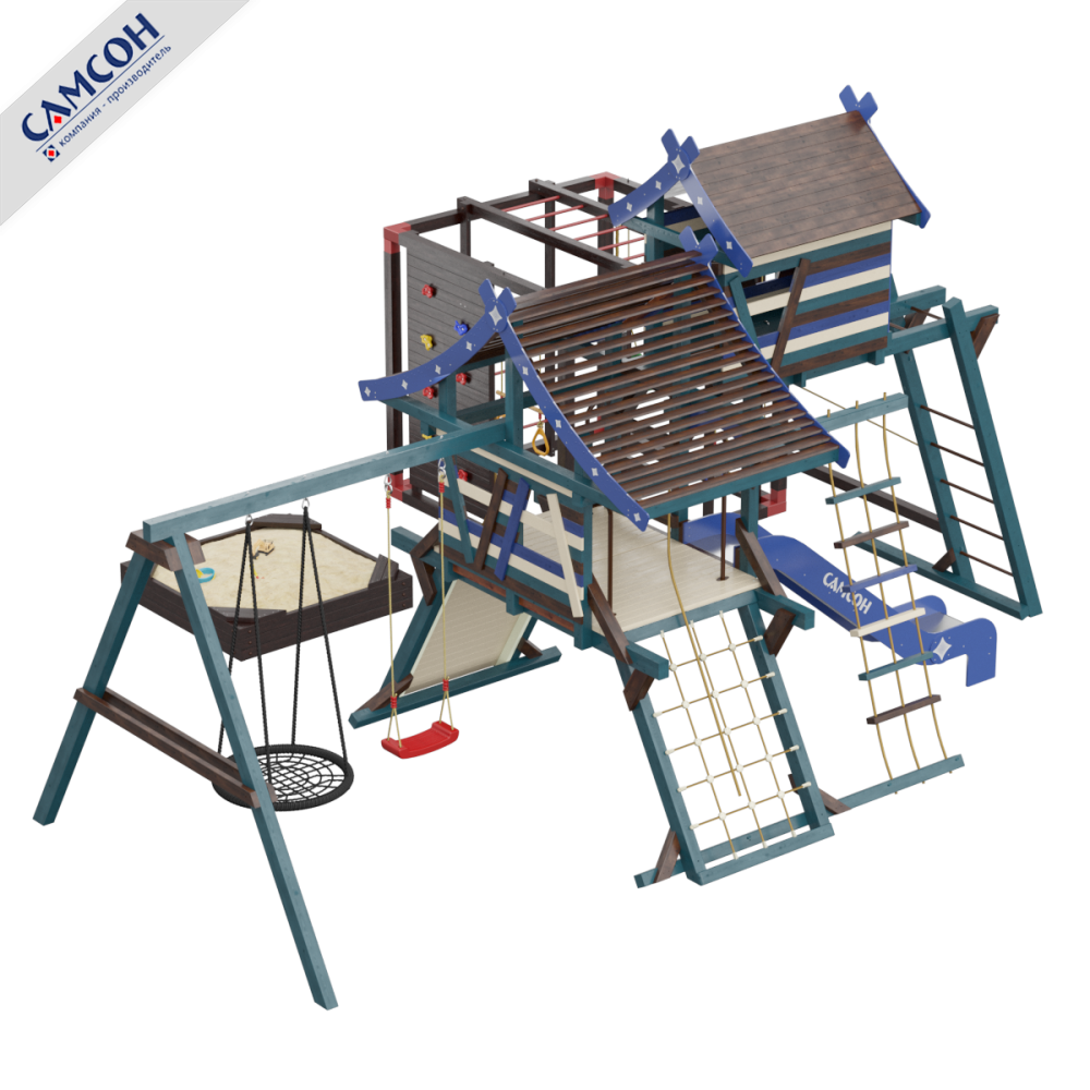 Товар поставляется в разобранном виде. В комплект для самостоятельной сборки входит подробная инструкция по сборке товара. Товар упакован в гофрокартонные короба. Установка детской игровой площадки проводится на ровной поверхности, свободной от насаждений. Рекомендуем зафиксировать конструкцию используя анкера любой формы.