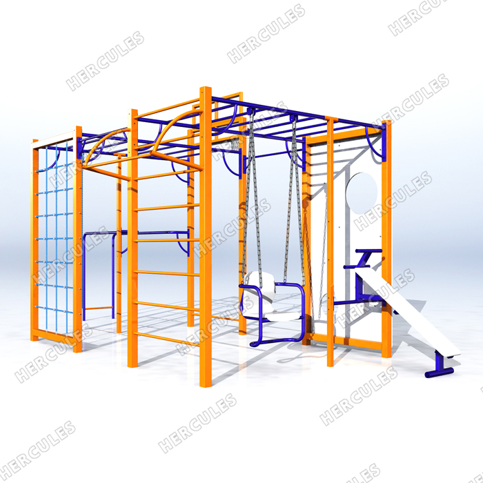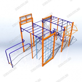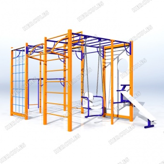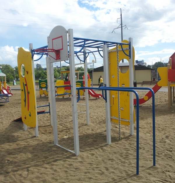 • Универсальная детская игровая площадка. В составе: рукоход, брусья, стритбольное кольцо, канат и сетка для лазанья, скамья для пресса, турники, шведская стенка. Отличное решение для небольшого двора.